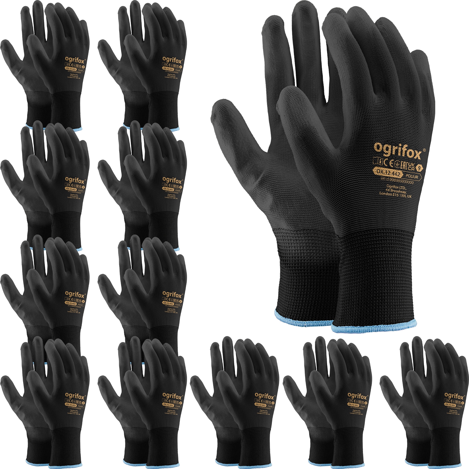 OGRIFOX Rękawice robocze z poliestru powlekane poliuretanem rozmiar 10 XL - 12 par