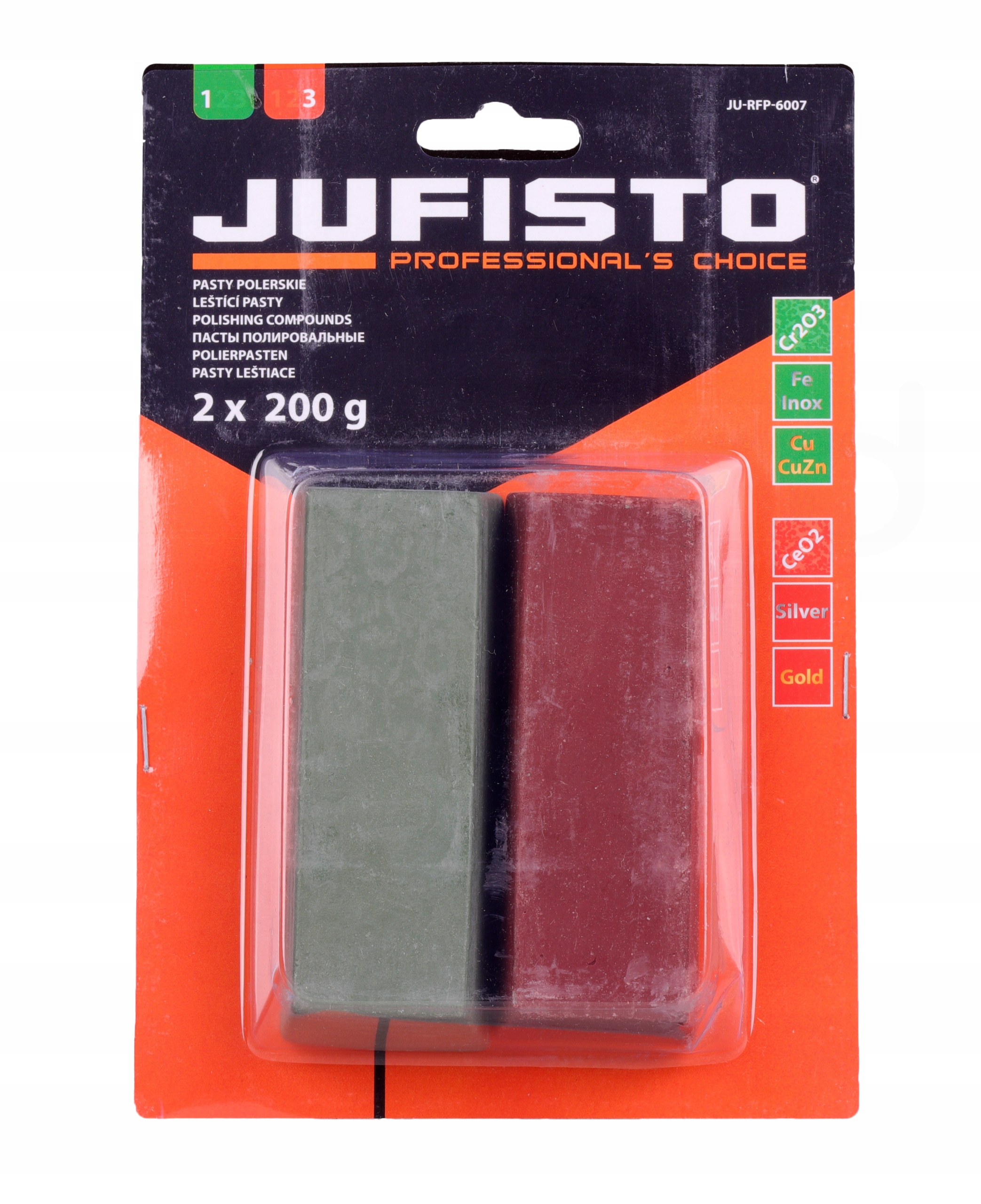 Zestaw past polerskich do końcowej obróbki powierzchni metali kolorowych, stali nierdzewnej oraz metali szlachetnych.