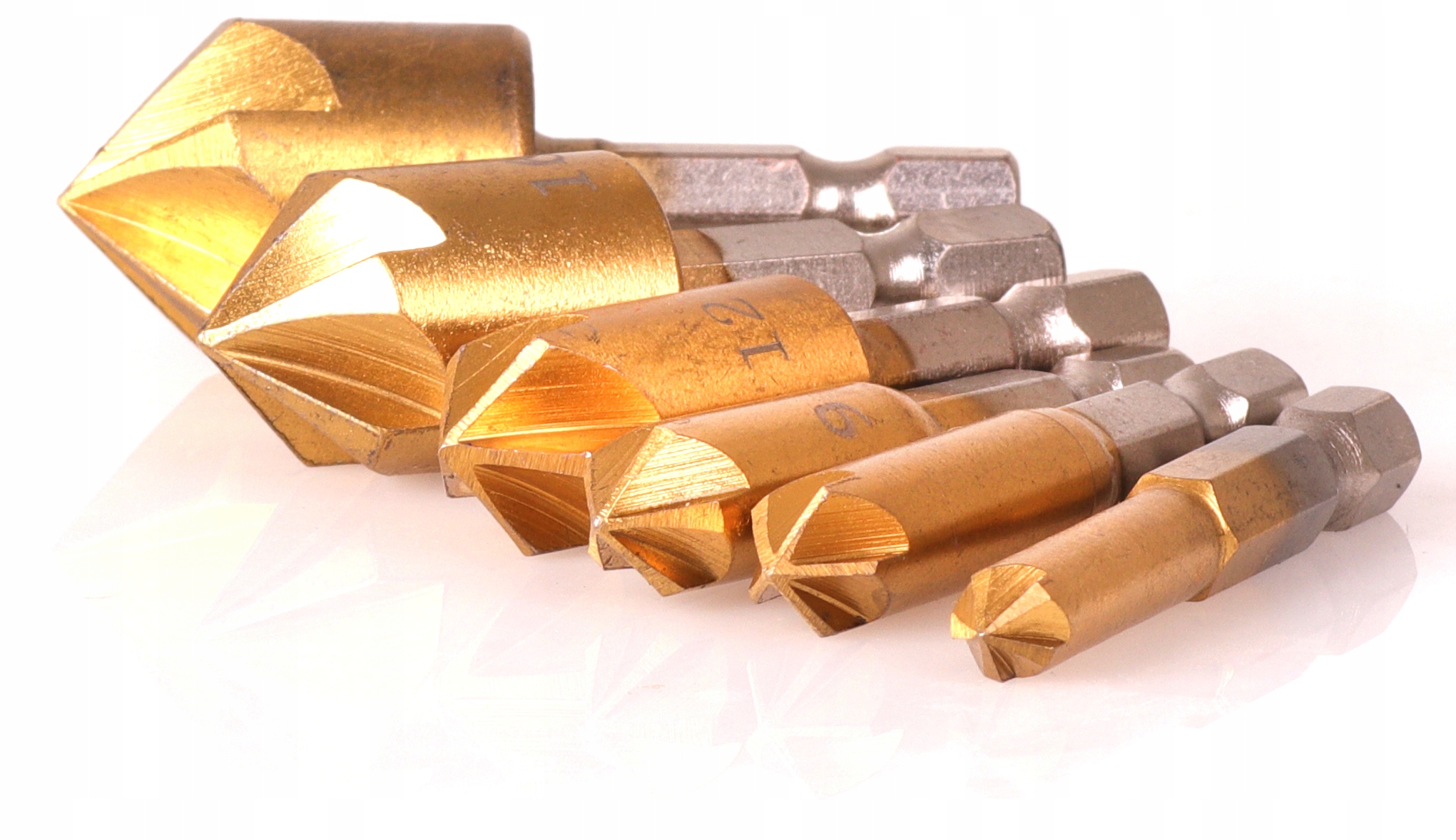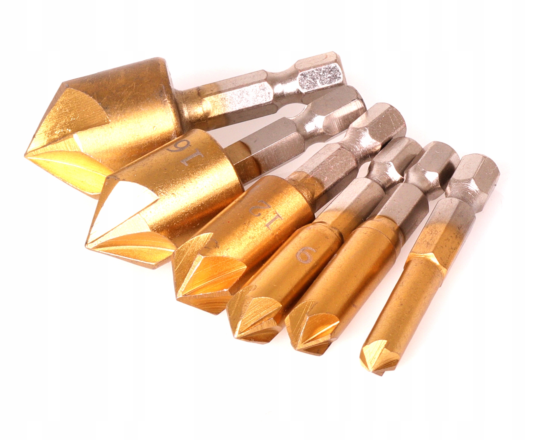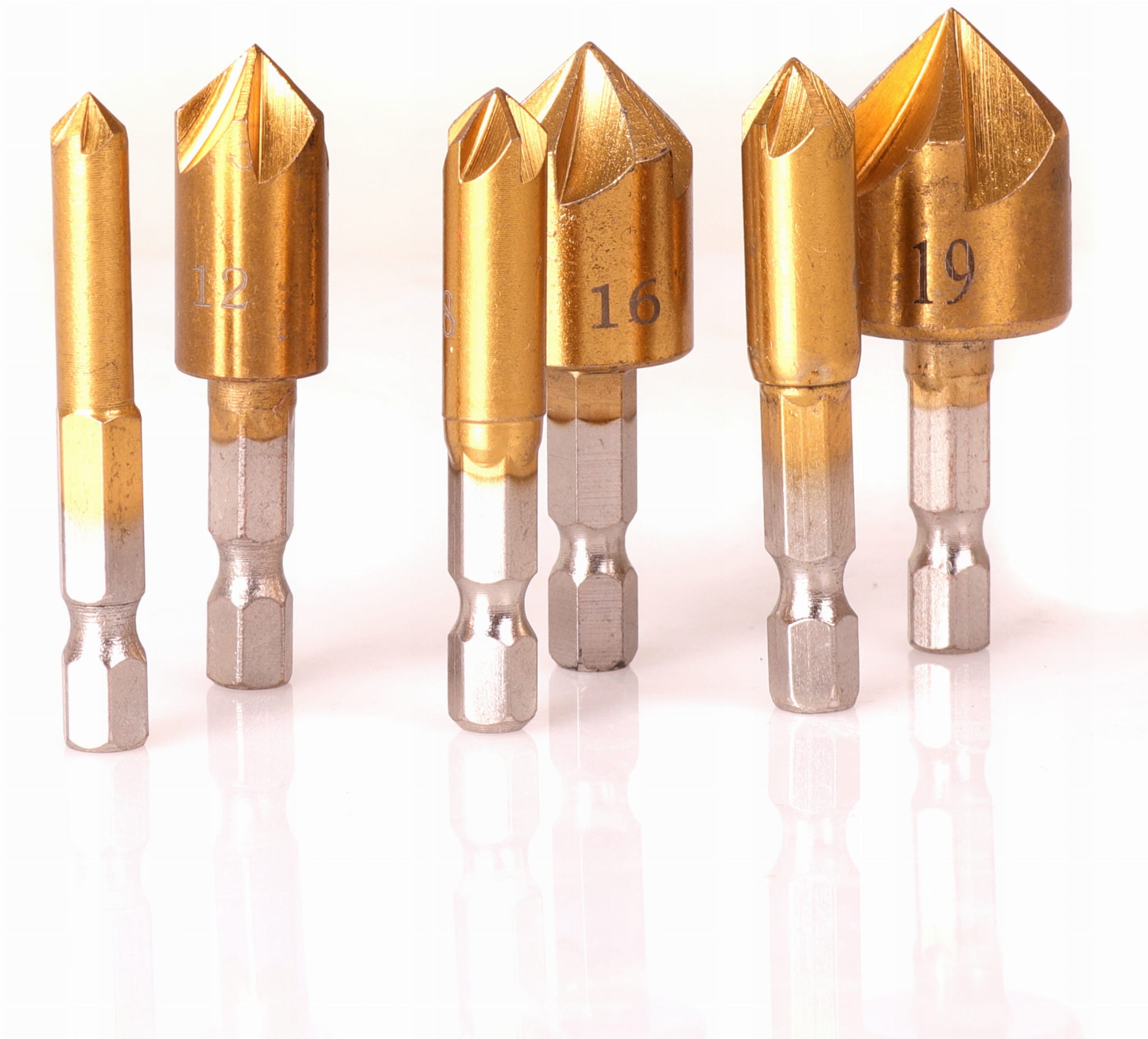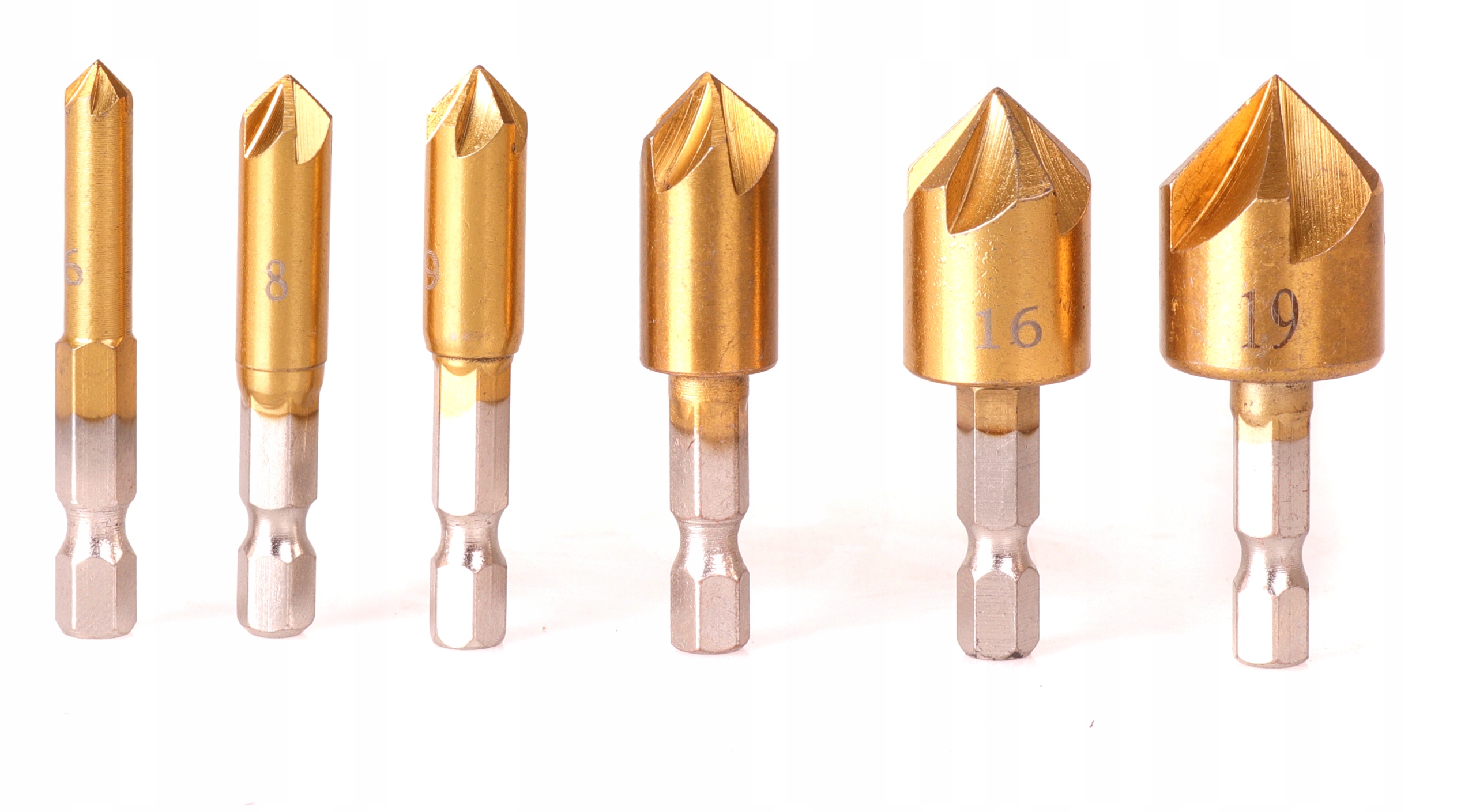 ✅6 wierteł: o różnych rozmiarach, co pozwala na fazowanie otworów o różnych średnicach
