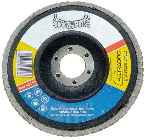 Tarcza ścierna listkowa wykonana jest z lamelek z płótna z ziarnem korundowym na dysku z włókna szklanego, nadaje się do obróbki stali, aluminium, drewna, metali kolorowych i innych materiałów.