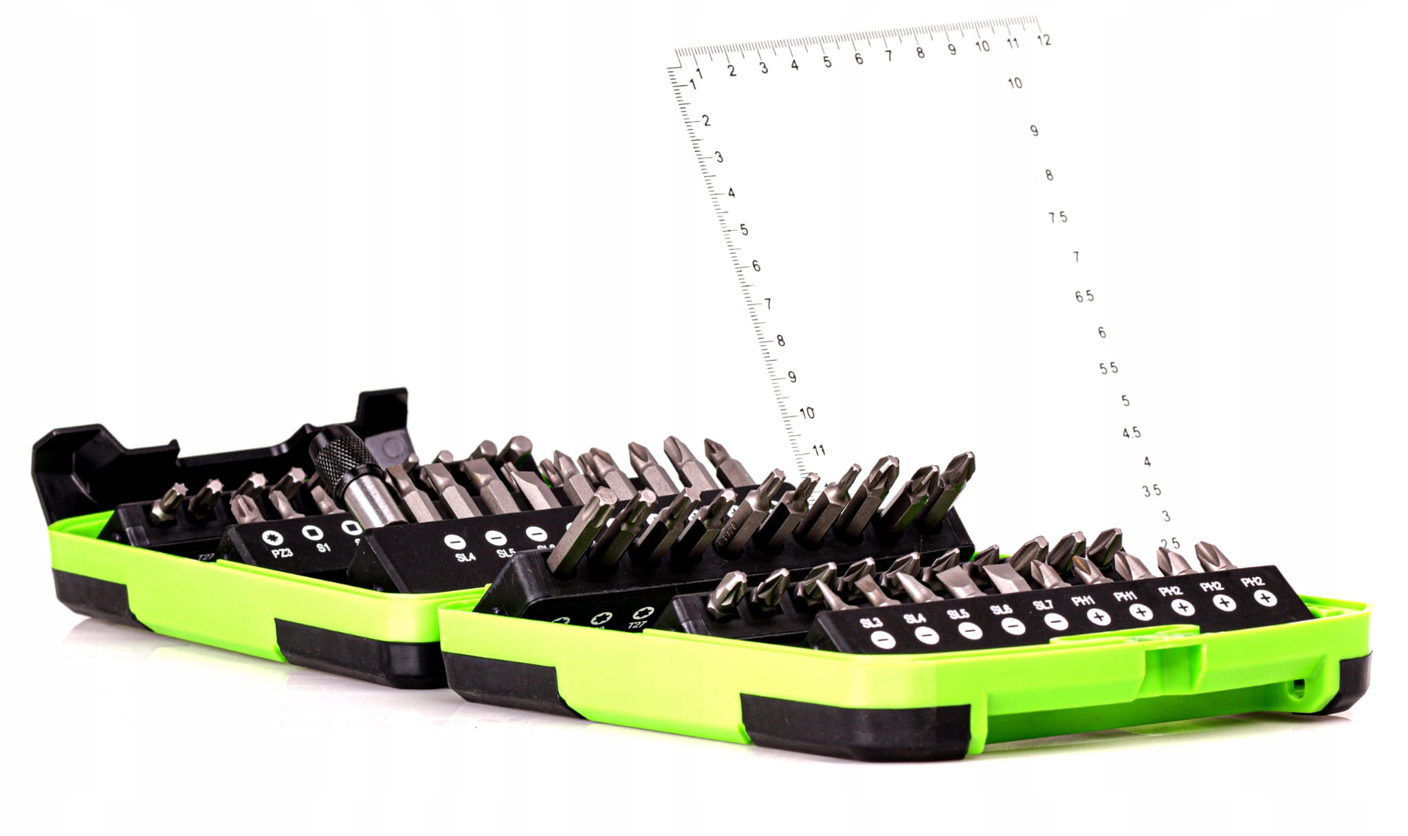 ✅ LINIJKA W ZESTAWIE - W walizce kwadratowy przymiar pozwalający w łatwy sposób odmierzać miejsca do wkręcania.